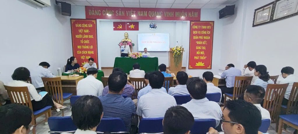 Chủ trì Hội nghị là bà Hồ Thanh Lý, Quận ủy viên, Bí thư Đảng ủy, Giám đốc Công ty và ông Nghiêm Bá Ngọc, Đảng ủy viên, Phó Giám đốc Công ty, Chủ tịch Công đoàn cơ sở Công ty.